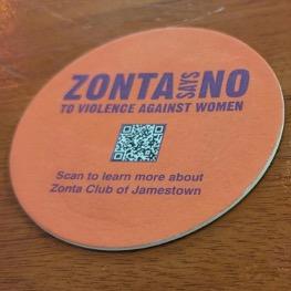 As part of this year’s efforts, the Zonta Club of Jamestown has partnered with numerous local establishments to distribute “Zonta Says No” informational coasters, designed by AKS Signs. These coasters provide discreet, accessible information about recognizing and ending violence against women, while also sharing resources for those who may need help.
